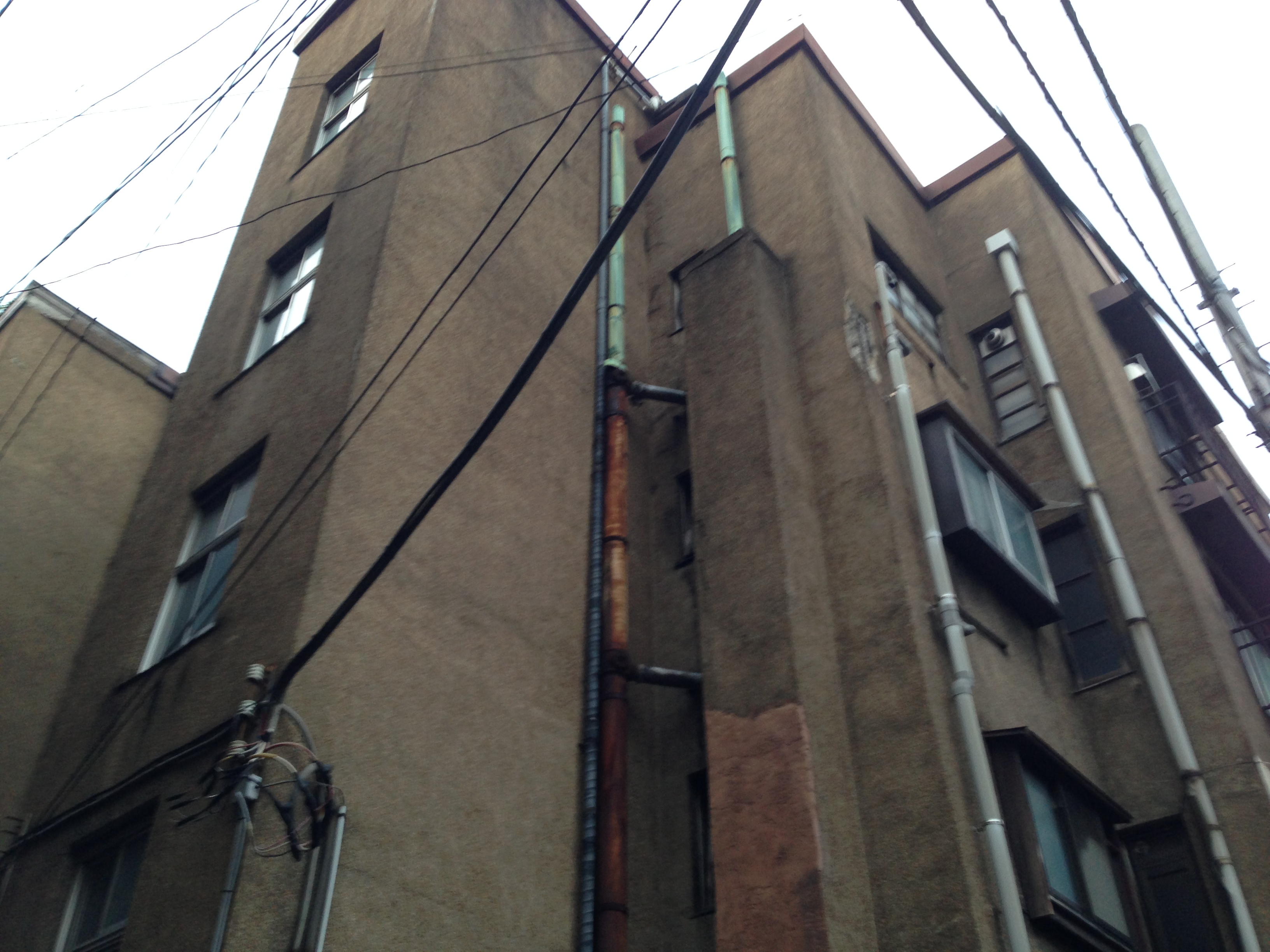 These were the last ones left of the dojunkai public housing projects that followed the Great Kanto Earthquake of 1923. Classic community blocks in the spirit of the Bauhaus, yet with playful deco flourishes: geometric cut-outs in porticoes, leadlight windows. The best known were at Daikanyama and Omote Sando. The former was demolished in 1996, Omote Sando in 2003. Both replaced by soulless malls.