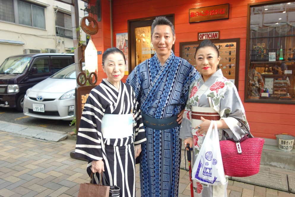Today Saturday you’re running an errand at the back of Asakusa 1-chome when coming the other way the older woman gives you a wink, so you say, May I take your photograph, you all three look splendid! Why certainly. Thank you, you are taking a stroll? Yes we are! Where are you off to? We’re off to eat! Then you’re in Ueno after sunset and looking at the exterior of a sprawling yakiniku restaurant called Daimon when a gum-chewing man whose name he later tells you is Takizawa says, Don’t go there, go to Hanmontei a few doors up, best yakiniku in Tokyo, we’ve just eaten there again, though to tell the truth it was better and more generous when the owner’s father ran it, the meat then was that thick and a third the price, but the karubi udon, the tofu chige and kobukuro are still delicious, I’d highly recommend it at lunchtime in particular, you know these North Koreans are a lot more finicky about their food than the southerners, and you know a lot of doctors come here to eat as well…in fact I’m in the hospital business myself. You thank him and off he goes to meet his wife who has been buying groceries, and they are both chewing what smells like Lotte Green Gum and she smiles a bit abashed perhaps at him being so forward. Must be the good meal. Goodbye! Back at February cafe, Kin-chan emits her usual sunshine. And that was Saturday.