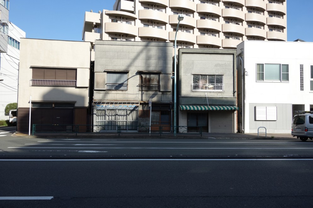 Coffee with Mr K in the crisp air after yesterday’s typhoon, and the light slants into the flat shopfronts over the road. K grew up here in Honjo in the postwar. He used to go behind those buildings to where there is now that modern apartment block, to the Kabaya sweets factory where you could exchange coupons from the packages for lucky toys.