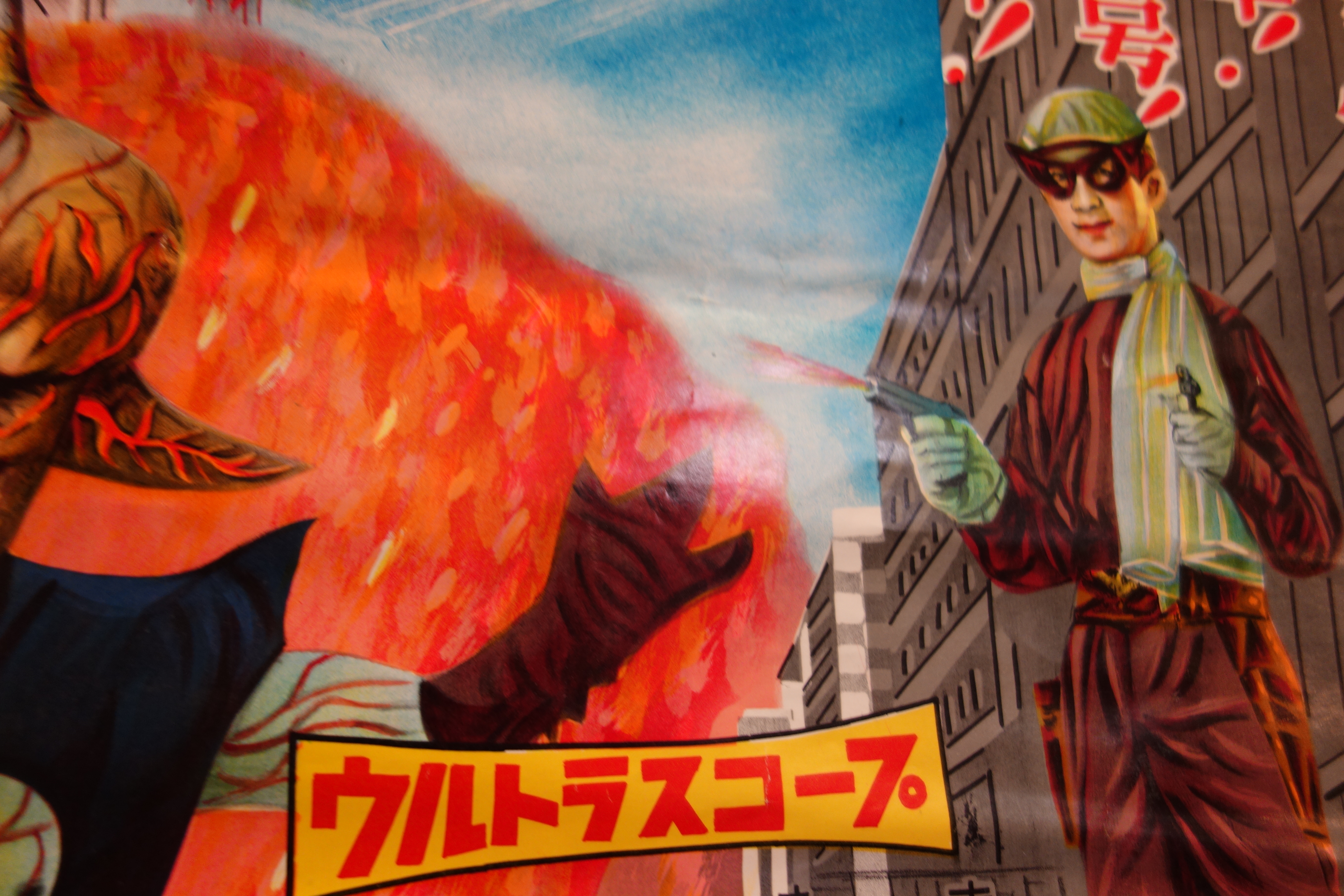 Other posters include a geisha-themed strip show, and a sci-fi space adventure starring swashbuckling Ken Utsui in tights, rescuing a maiden.