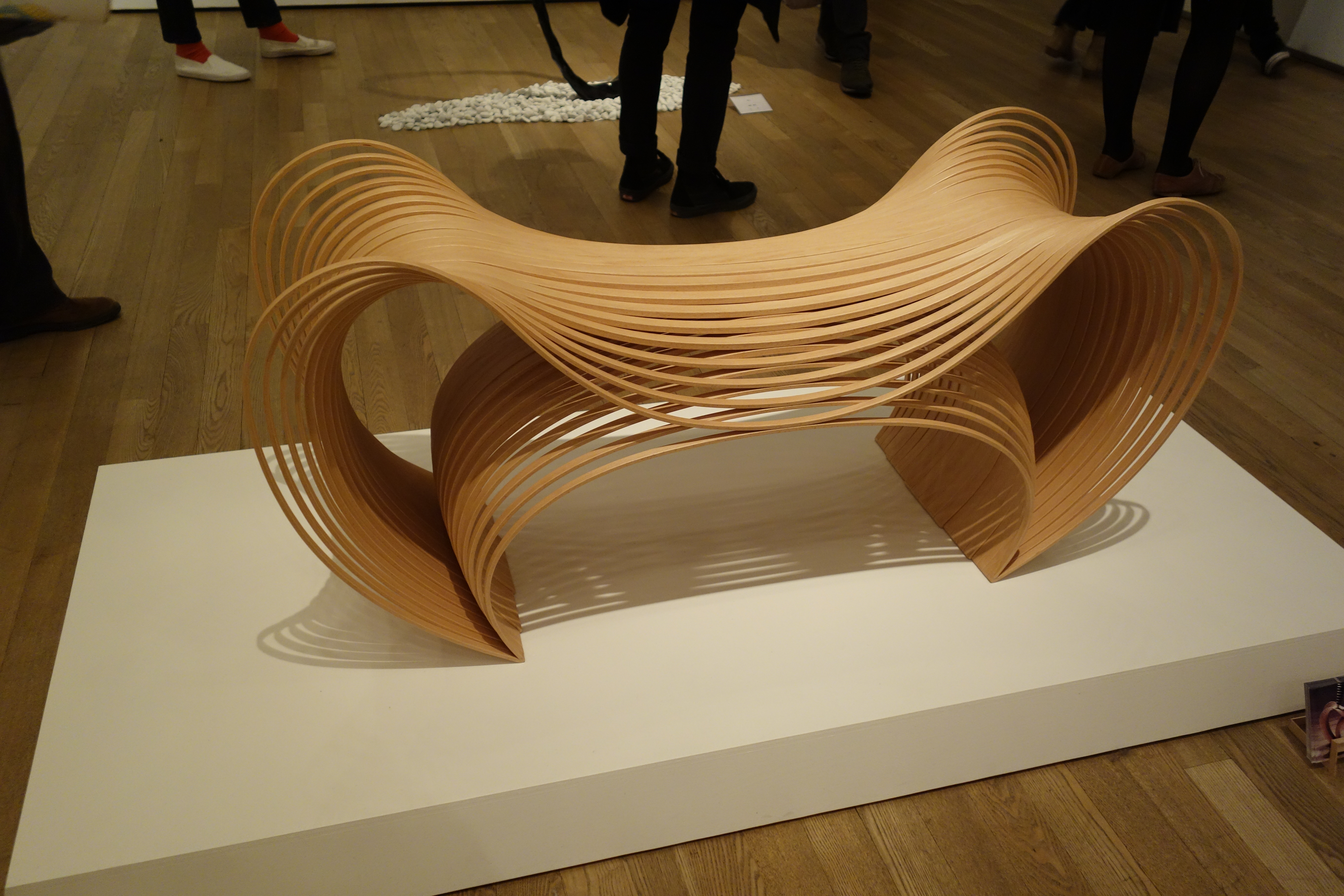 The artists are coming from the masters programme, so there’s a bit more to it than your average student show. There are misses and hits. There is quantity, and variety and vitality. Enough to encourage you to try and come back before it closes in a couple of days. You moved from floor to floor, building to building, from sculpture to oil-painting, nihon-ga, wood- and metal-crafts including furniture, kimono, and installation. On a patch of mud between buildings there is a noise-music video of a man’s twisting back muscles, an installation cleverly housed (quarantined?) in a shipping container. A few metres away is another work comprising a deep hole in the dank soil into which the artist climbs a couple of times of day, to do what, you’re not sure, but it’s called something like Heartbeat and there is an intercom into the hole.