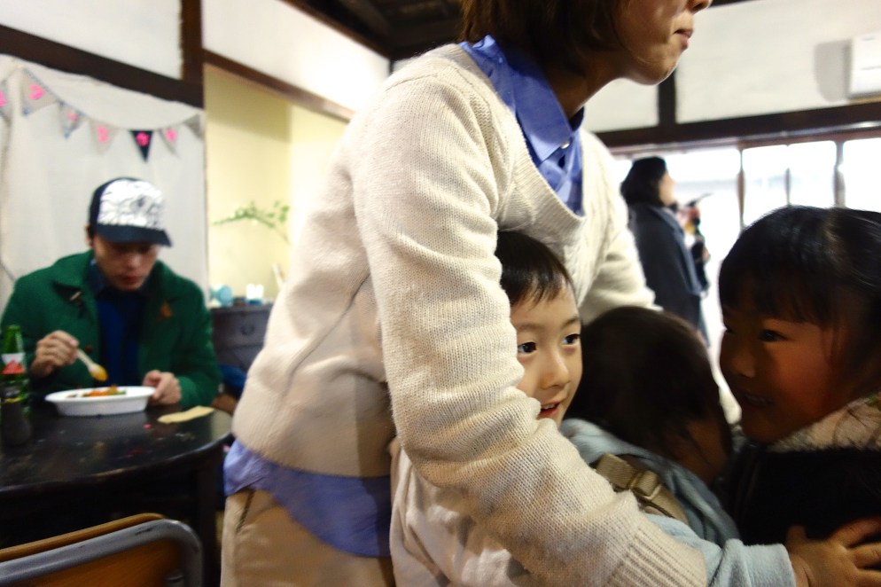 The house has been semi-renovated by another loose-knit group of about a half-dozen students from Denki Daigaku, Musashino Arts University and others, including Maui in the green sweater, who’s in architecture and tells you of plans to make the outside space good for performances. At the moment the house doubles as a workspace and children’s drop-in center, a sort of daycare between home and school, given that around here, with the lack of parks and the high-density living, there’s almost nowhere to play.