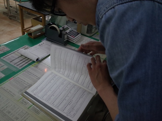 He flicks through a big book to show you the hundreds and hundreds of different character styles – perhaps you could even call them fonts. The sample character is sho, or “to write”.