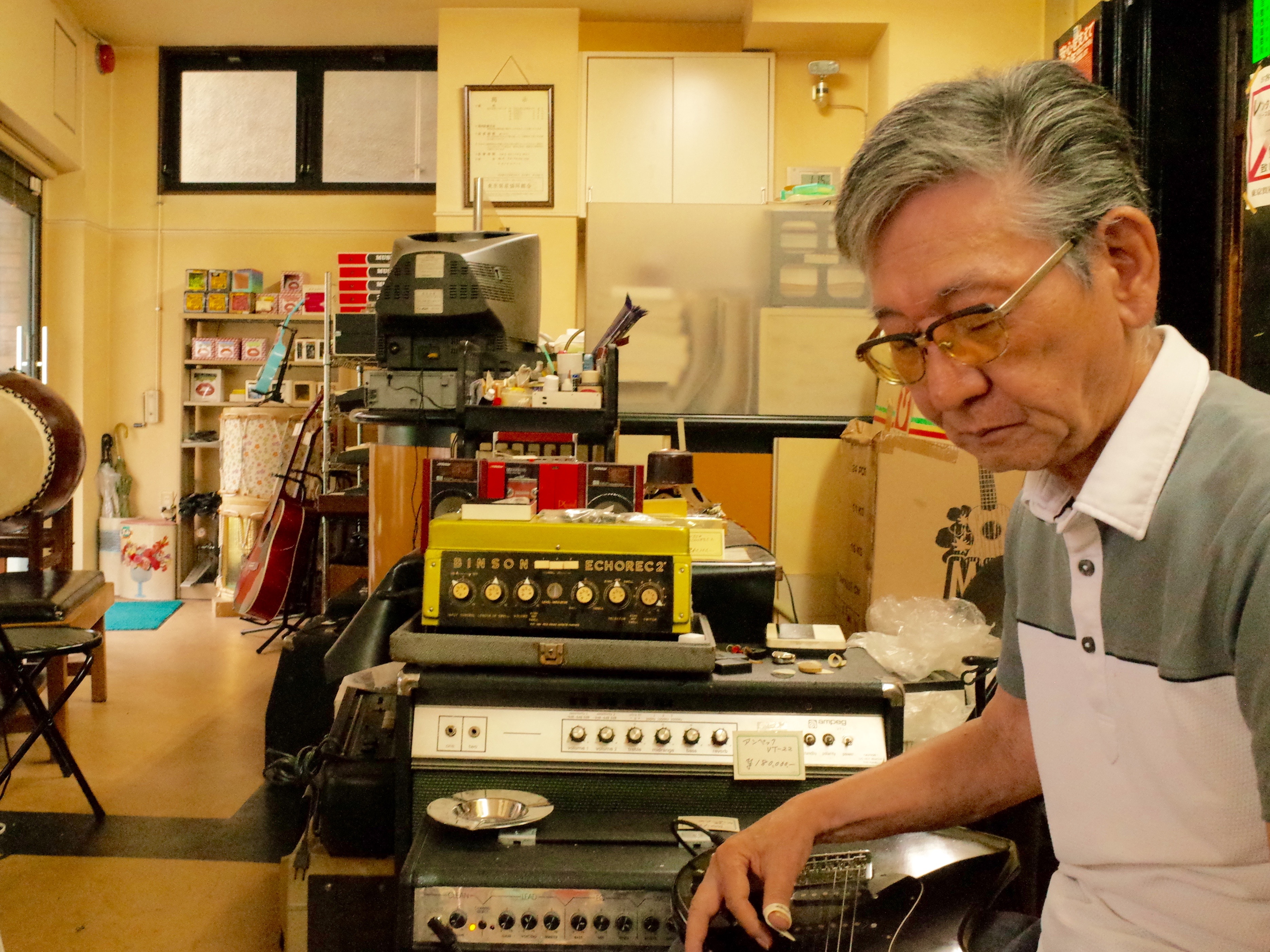 I have musician customers all over Japan, he says. Other music stores come to me for instruments. Even those big stores around Ochanomizu, they come to me. He gives you a sly grin.