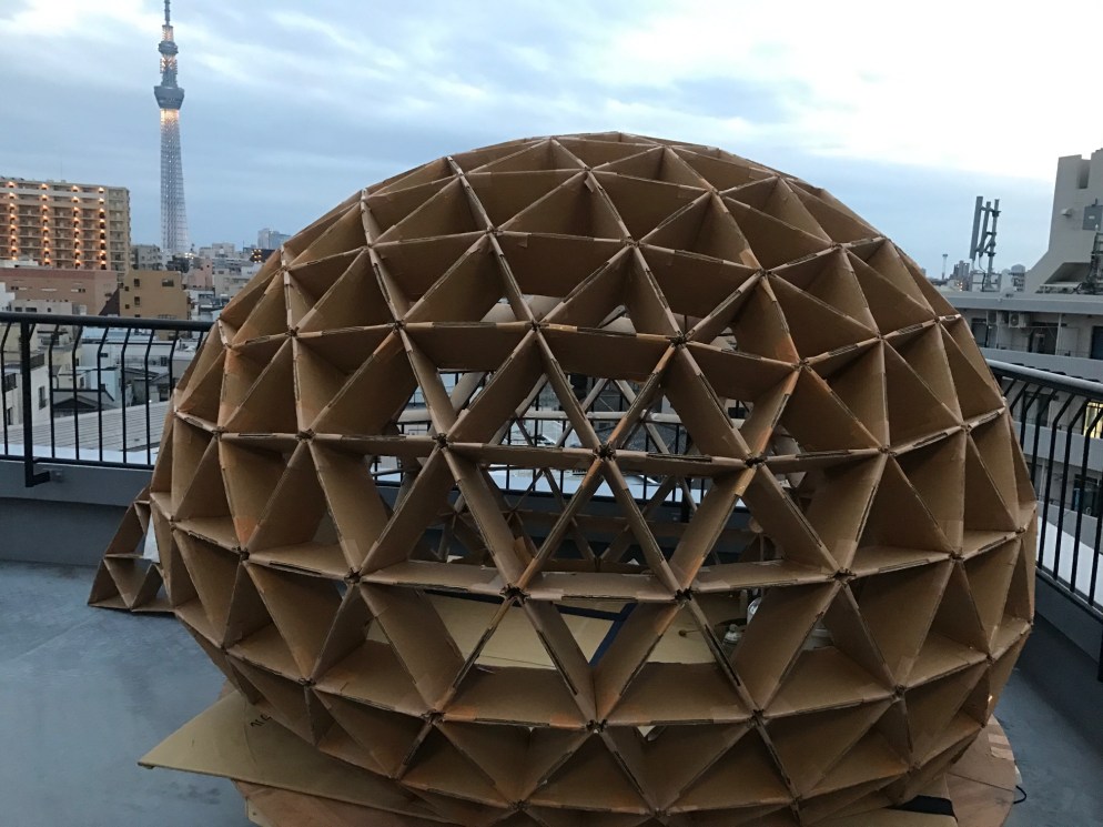Tea ceremony on the roof of a nearby apartment block is by the three men who make up Chaban Guild. They have a dome. It’s entirely cardboard, see-through, about as practical against outside light, wind and sound as a fishnet stocking. Walk the paper stepping stones and climb in, however, and you feel protected from the material world. That’s the way of tea.