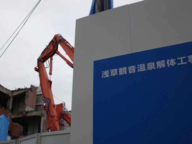 They’ve pulled the plug at Asakusa Kannon Onsen bathhouse, the Waters of the Goddess of Mercy. You might hope with a name like that, this fountain of youth could live forever. But the truth is, it was long circling the drain, with broken glass bricks, dripping water and crumbling concrete.