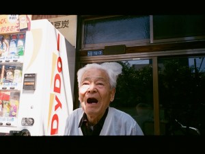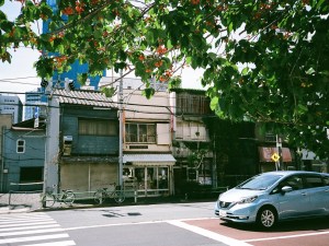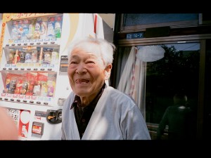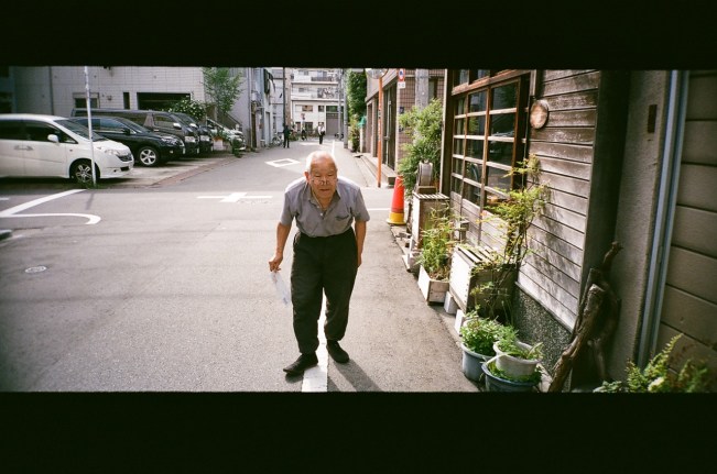 I seem to run into elderly gentlemen with things on their minds. The same afternoon on the way to the station, I walked through Kotobuki near the Lemon Pie cake shop, past the home of bucket-maker Hiroshi Miura. I wrote some years ago about Miura and the miniature wooden houses he carves. I was hoping he might be there, maybe tinkering with something on the raised area just beyond his entrance well.
