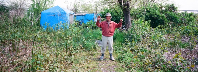 […] Arakawa one humid afternoon about a week after the terrible typhoon of September 9, I looked in on Mr Tanaka at his small compound of blue tarpaulin huts. We sat on boxes under a tarp among the summer weeds, […]