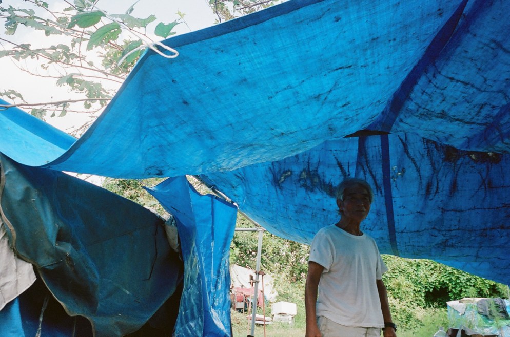 It’s difficult to read until we realise we are looking at it upside down, which seems appropriate given the chaos of the deluge. I want to ask him about it, and he grows talkative about other things. Unprompted, he often refers to the Pacific War; his remarks come with pauses that are like sadness. But he doesn’t stay down for long. He turns 80 next year. It’s hard to imagine him sustaining this life, lived almost off-the-grid — though he still works in construction — if he gave in to dark thoughts.
